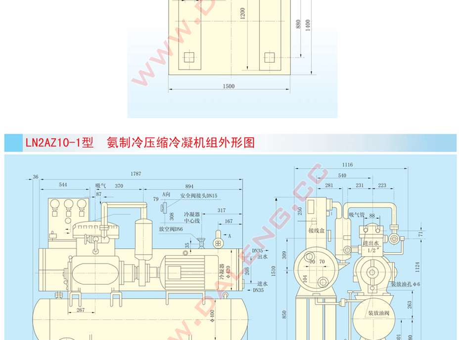 品 名:  LN2AZ10活塞式氨制冷压缩冷凝机组