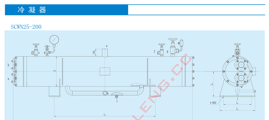 冷凝器是船用制冷系统中的一种主要热交换设备。高温高压的制冷剂蒸气通过换热管被海水冷却为冷液体。冷凝器换热管采用高效管,提高了换热效率,热负荷不变的情况下,外形尺寸大幅度缩小,单机重量显著减轻,提高了有限的船舱空间的有效利用率。