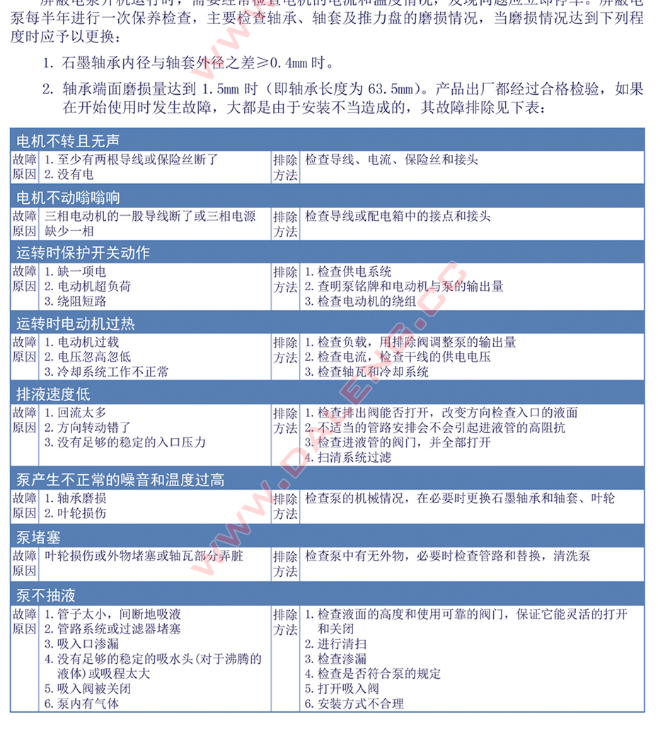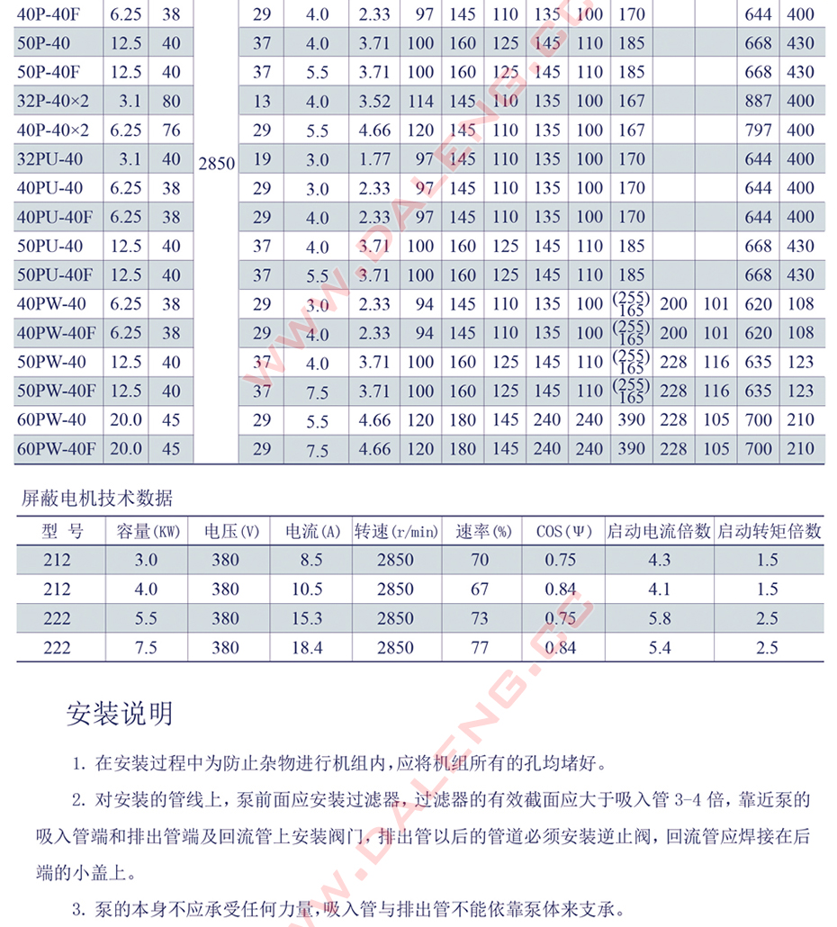 其中PU型、PW型系列屏蔽电泵的主要特征是在泵的进口处叶轮前端设有自吸能力装置。在氨氟制冷系统中,可以在-50℃的低温工况下保持正常的供液状态。并且因具有自吸能力,从而降低了对液体的液位高度设计要求,进一步降低了设备的安装高度。